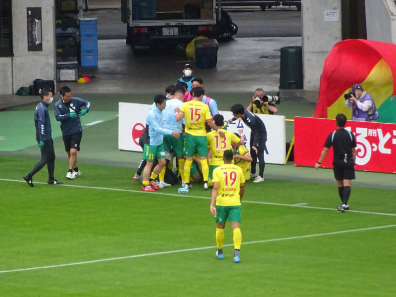 前半は、中盤でバチバチ当たる展開で、両チームともそれほどゴール前でのチャンスはあまり作れないような展開でした。それでも、シュートチャンスは作ったもののゴールならず。岡山は、終盤のチアゴ・アウベスのシュートが決定機でしたが、新井が止めてくれて助かりました。