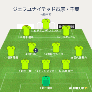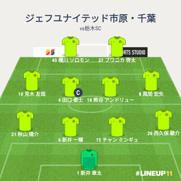 ジェフの先発メンバーは、GKに新井、CBに新井一輝とチャン、右SBに西久保、左SBに秋山、ボランチに田口と熊谷、右MFに風間、左MFに見木、2トップにソロモンとブワニカという布陣でした。
