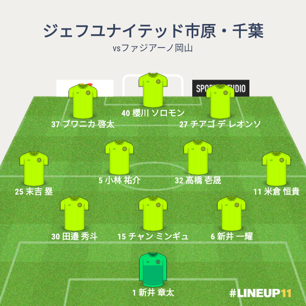 ジェフの先発メンバーは、GKに新井、CBに新井一輝とチャンと田邉、ボランチに田口と小林、右WBに福満、左WBに秋山、シャドーに風間と高木、1トップにチアゴという布陣でした。