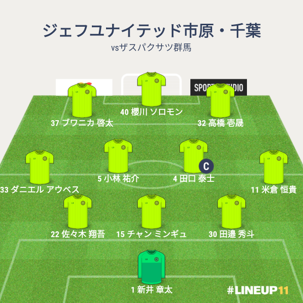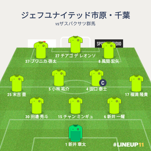 ジェフの先発メンバーは、GKに新井、CBに新井一輝とチャンと田邉、ボランチに田口と小林、右WBに福満、左WBに末吉、シャドーに風間とブワニカ、1トップにチアゴという布陣でした。