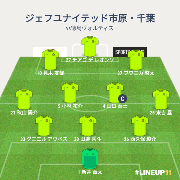 ジェフの先発メンバーは、GKに新井、CBに田邉と西久保とダニエル・アウベス、ボランチに田口と小林、右WBに末吉、左WBに秋山、右WGにブワニカ、左WGに見木、トップにチアゴという布陣でした。