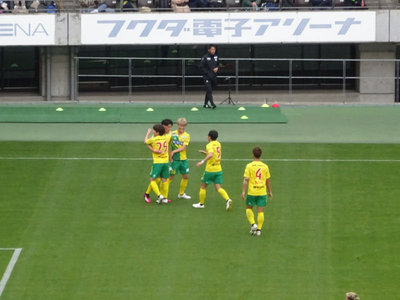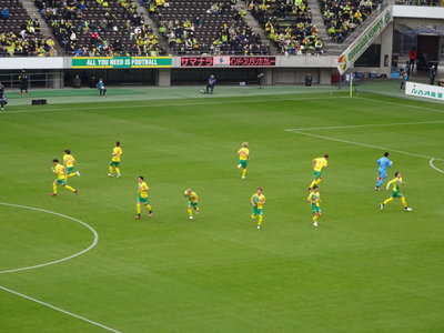 前半10分、呉屋がボールを受けて、反転シュートもブロックされる。前半11分、ジェフのCK。はねかえされたボールを末吉がシュートも上に外れる。