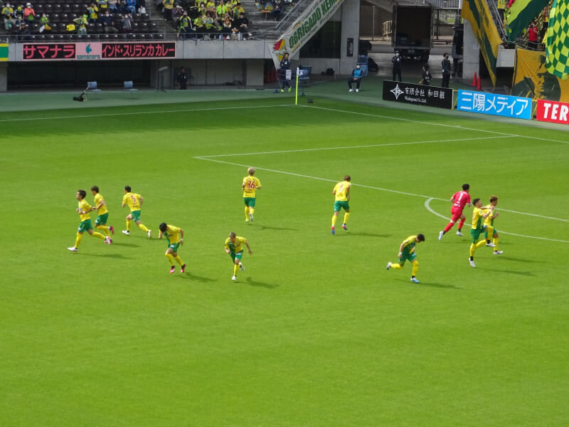 ジェフの攻めは、ショートカウンター中心ではありますが、中央からの崩しもあり、両サイドからのクロスもあり、多彩さも出てきました。小森のゴールはロングフィードから。狙っていた形の一つです。呉屋のゴールは、当初オウンゴールとの発表でしたが、呉屋のゴールに変わりました。呉屋にゴールが生まれたのは大きい。