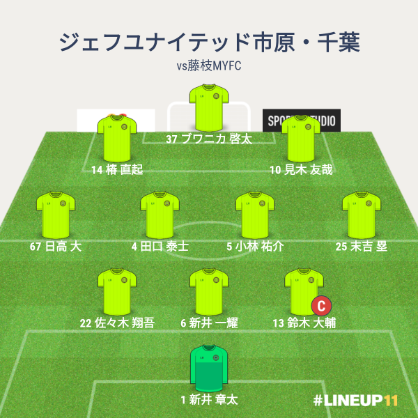 ジェフの先発は、GKに新井章大、CBに鈴木と新井一輝、右SBに松田、左SBに日高、ボランチに田口と小林、右MFに田中、左MFに見木、トップ下に風間、トップに呉屋という布陣でした。