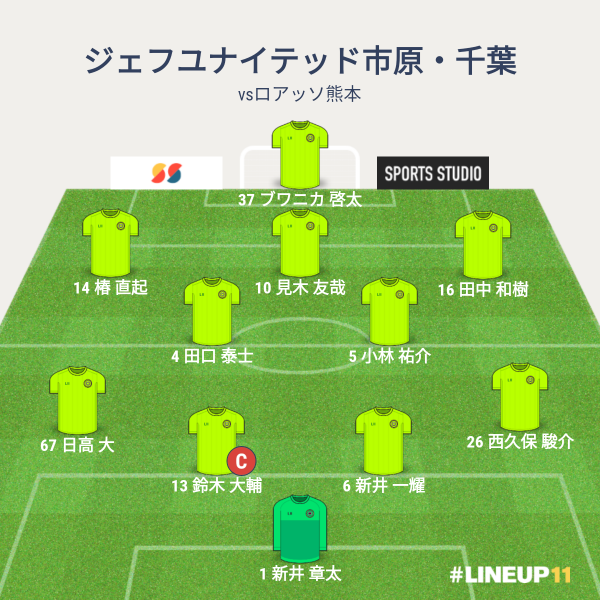 ジェフの先発は、GKに新井章大、CBに鈴木と新井一輝、右SBに西久保、左SBに日高、ボランチに田口と小林、右MFに田中、左MFに椿、トップ下に見木、トップにブワニカという布陣でした。