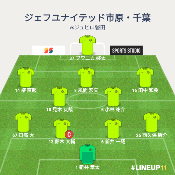 ジェフの先発メンバーは、GKに新井、CBに新井一輝、鈴木、右SBに西久保、左SBに日高、ボランチに小林と見木、右MFに田中、左MFに椿、トップ下に風間、1トップにブワニカという布陣でした。