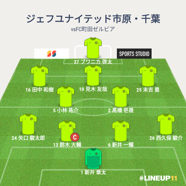 ジェフの先発メンバーは、GKに新井、CBに新井一輝、鈴木、右SBに西久保、左SBに松田、ボランチに小林と壱晟、右MFに新明、左MFに椿、2トップに小森と見木いう布陣でした。