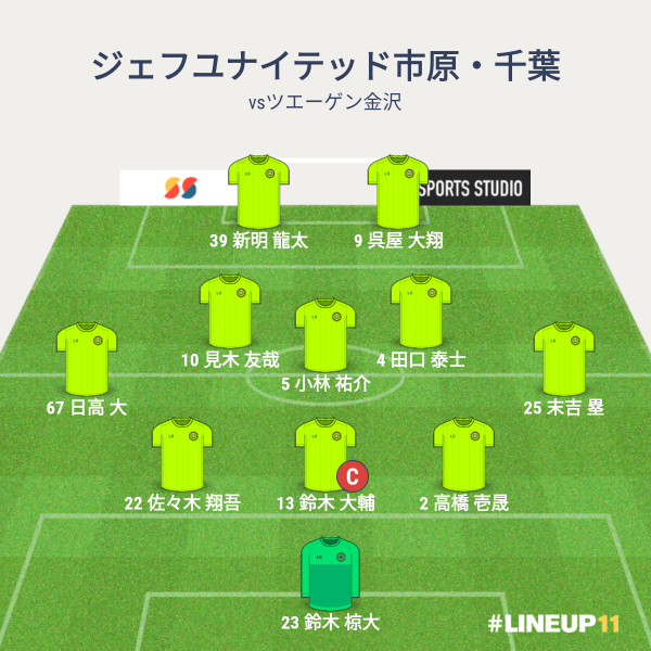 ジェフの先発メンバーは、GKに新井、CBに鈴木と佐々木と壱晟、アンカーに小林、IHFに田口と見木、右WBに末吉、左WBに日高、2トップに呉屋と新明という布陣でした。