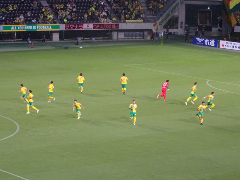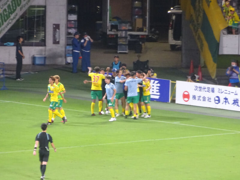 後半37分、自陣での競り合いから高木が受けて風間へ。風間が右サイドに展開して、米倉がクロスを送る。ブワニカがジャンピングボレーで合わせるがバーに当たってしまう。このはねかえりを見木がボレーで合わせると、バウンドしたボールがそのままゴールに吸い込まれる。ジェフが先制する。