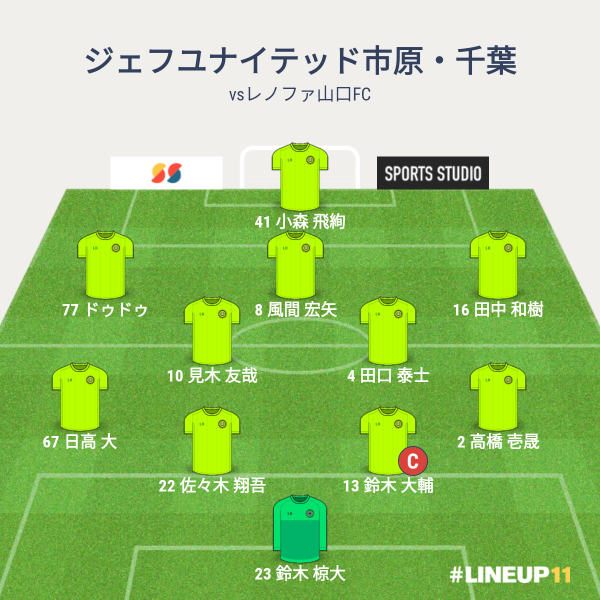 ジェフの先発メンバーは、GKに鈴木椋、CBに鈴木大と佐々木、右SBに壱晟、左SBに日高、ボランチに田口と見木、右MFに田中、左MFにドゥドゥ、トップ下に風間、トップに小森という布陣でした。ドゥドゥが加入後初先発となりました。