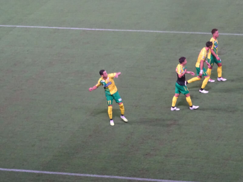 前半23分、風間からのサイドチェンジのボールをドゥドゥが受けて小森へ。小森がカットインしながら、ヒールパス。風間が受けてシュートが左隅に決まる。ジェフが先制する。