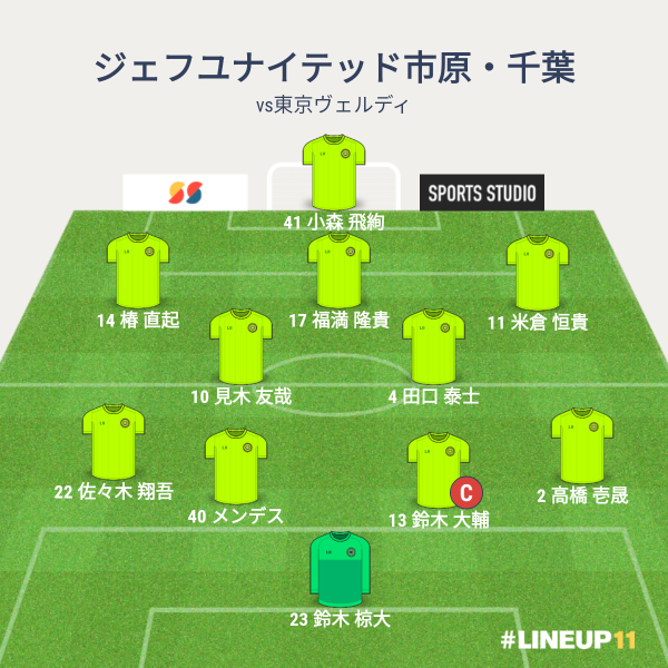 ジェフの先発メンバーは、GKに鈴木椋大、CBに鈴木大輔と佐々木、右SBに壱晟、左SBに日高、ボランチに田口と見木、右MFに田中、左MFにドゥドゥ、トップ下に風間、1トップに呉屋という布陣でした。