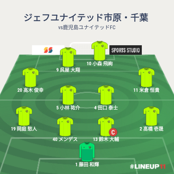 ジェフの先発は、GKに藤田、CBに鈴木と佐々木、右SBに壱晟、左SBに矢口、ボランチに田口と小林、右MFに田中、左MFに椿、トップ下に風間、トップに小森という布陣でした。