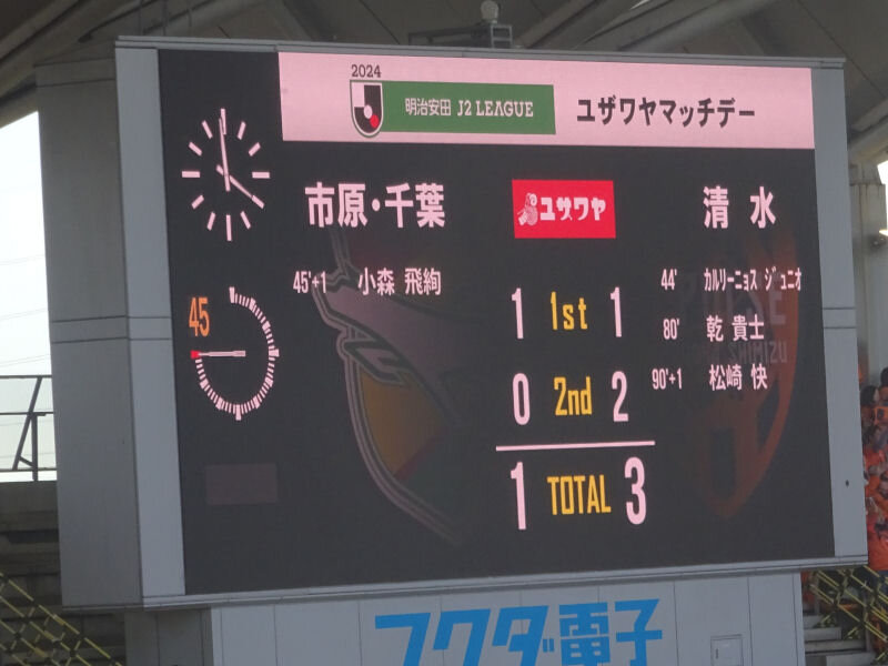 試合は、このままスコアが動かず。1-3で清水が勝利した。