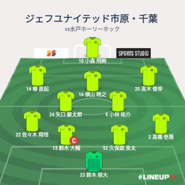 ジェフの先発は、GKに藤田、CBに鈴木と佐々木、右SBに壱晟、左SBに矢口、ボランチに田口と小林、右MFに田中、左MFに椿、トップ下に風間、トップに小森という布陣でした。