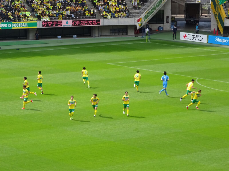 後半34分、岡庭のクロスに、ドゥドゥが合わせるが防がれる。後半36分、ジェフのCK。はねかえりをひろって小森がシュートもブロックされる。さらに、岡庭のクロスが流れたところをひろって、ドゥドゥがシュートも相手にあたって外れる。