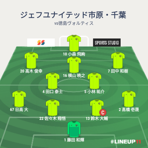 ジェフの先発メンバーは、GKに藤田、CBに鈴木と佐々木、右SBに壱晟、左SBに日高、ボランチに田口と小林、右MFに田中、左MFに高木、トップ下に横山、トップに小森という布陣でした。