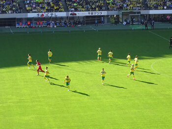 前半25分、ジェフのFK。エドゥアルドが頭で合わせてゴール。ジェフが同点に追いつく。