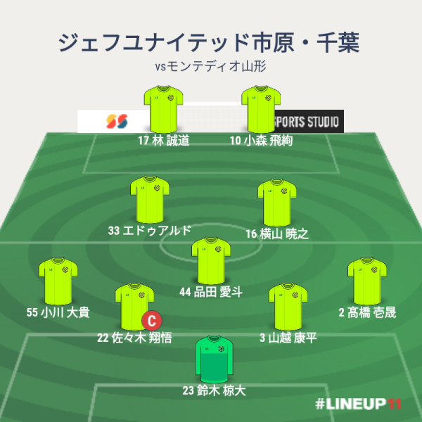 ジェフの先発は、GKに鈴木、CBに山越と松田、右SBに壱晟、左SBに佐々木、ボランチに品田とエドゥアルド、右MFに田中、左MFに椿、トップ下に横山、トップに小森という布陣でした。