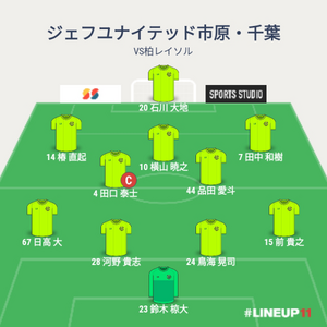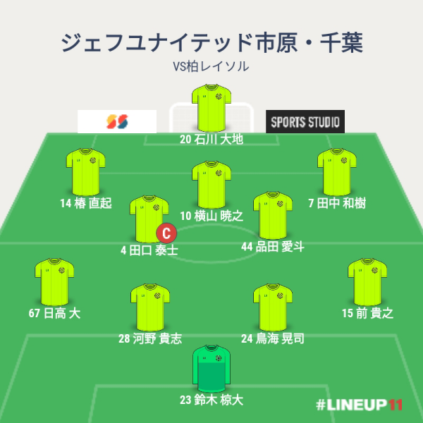 ジェフの先発は、GKに鈴木椋大、CBに鳥海と河野、右SBに前、左SBに日高、ボランチに田口と品田、右SHに田中、左SHに椿、トップ下に横山、トップにという布陣でした。