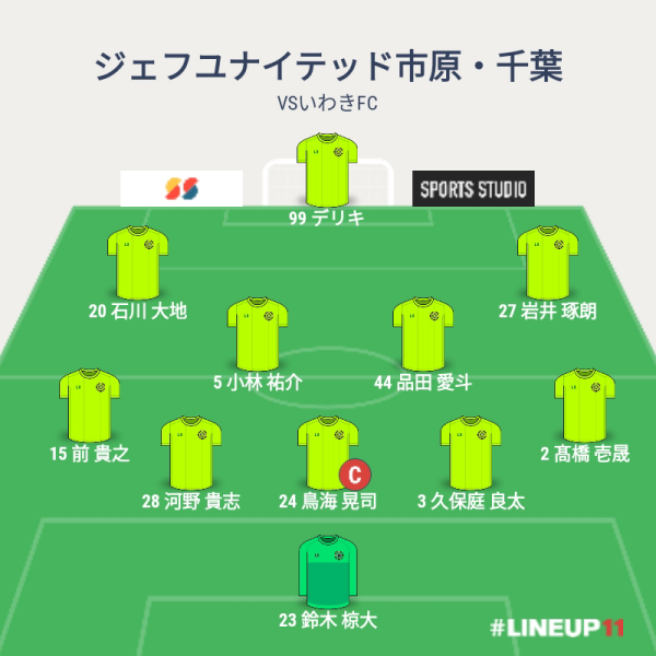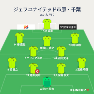 ジェフの先発は、GKに鈴木、CBに鳥海と久保庭、右SBに壱晟、左SBに前、ボランチに品田とエドゥアルド、右MFに田中、左MFに椿、トップ下に横山、トップに林という布陣でした。