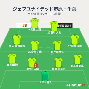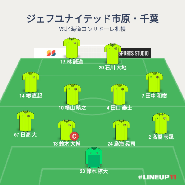 ジェフの先発は、GKに鈴木椋大、CBに鈴木大輔と鳥海、右SBに壱晟、左SBに日高、ボランチに田口と横山、右MFに田中、左MFに椿、2トップに林と石川という布陣でした。