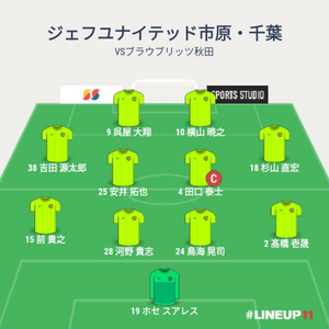 ジェフの先発メンバーは、GKにスアレス、CBに鈴木大輔と鳥海、右SBに壱晟、左SBに前、ボランチに田口と横山、右MFに田中、左MFに椿、トップ下に横山、トップにカルリーニョスという布陣でした。