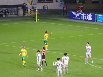 前半16分、ジェフのFK。サイドに流れたボールをひろってクロスから、鈴木が頭に当てるがクリアされる。