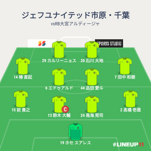 ジェフの先発メンバーは、GKにスアレス、CBに鈴木大輔と鳥海、右SBに壱晟、左SBに前、ボランチに品田とエドゥアルド、右MFに田中、左MFに椿、2トップにカルリーニョスと石川という布陣でした。