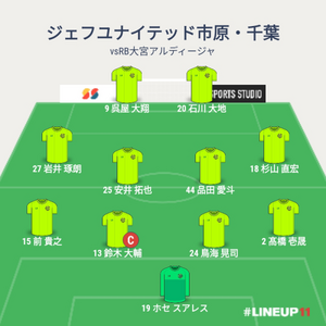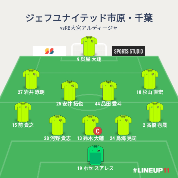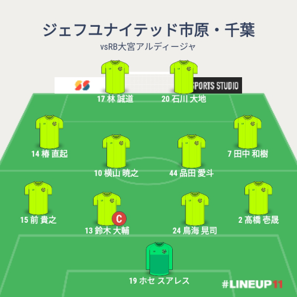 ジェフの先発は、GKにスアレス、CBに鈴木と鳥海、右SBに壱晟、左SBに前、ボランチに品田と横山、右MFに田中、左MFに椿、2トップに石川と林いう布陣でした。