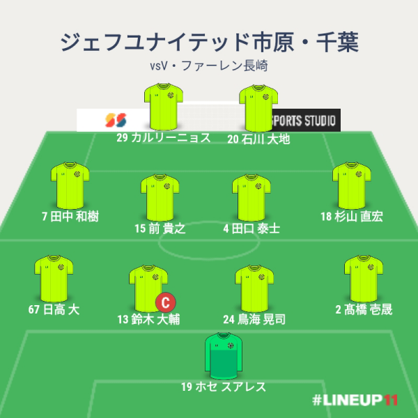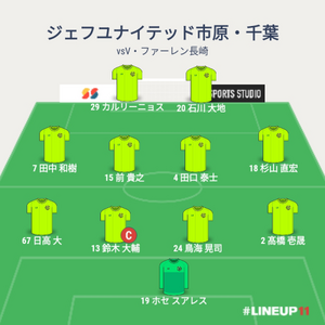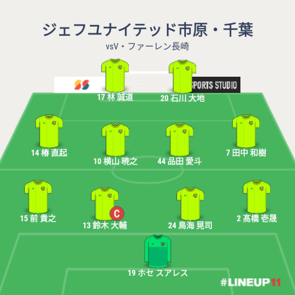 ジェフの先発は、GKにスアレス、CBに鈴木と鳥海、右SBに壱晟、左SBに前、ボランチに品田と横山、右MFに田中、左MFに椿、2トップに石川と林いう布陣でした。