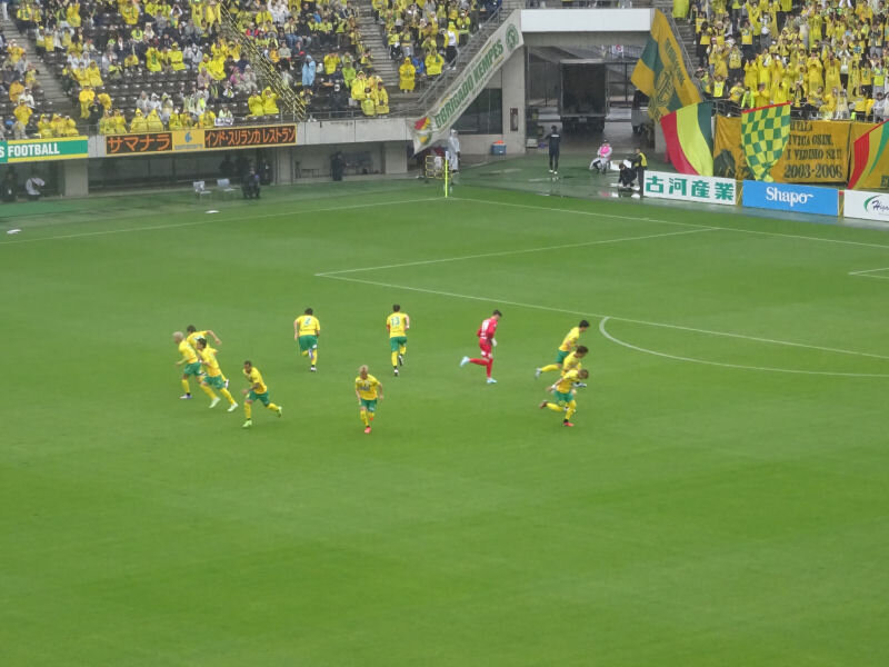 ジェフの先発メンバーは、GKにスアレス、CBに鈴木大輔と河野、右SBに壱晟、左SBに日高、ボランチに田口と横山、右MFに田中、左MFに椿、2トップにカルリーニョスと風間という布陣でした。風間が今期初先発です。