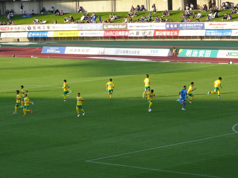 この日は、立ち上がりからないかピリッとしない展開で、富山に押し込まれる時間が長くなりました。前でボールが奪えずショートカウンターの形も作れず。自陣からのビルドアップもパスミスが多くてゴール前まで行けず。ほとんどシュートもないまま前半を折り返す結果となりました。