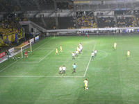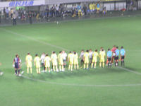 さて、試合のほうです。ジェフの先発は、GKに岡本、CBに竹内とミリガン、右SBに山口、左SBに良太、ボランチに、勇人とゲッセル、トップ下に米倉、右WGに大介、左WGに深井、トップに久保という布陣でした。