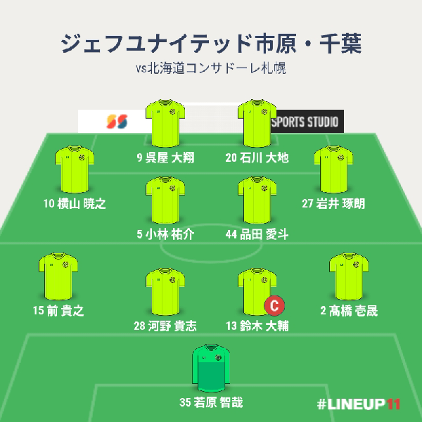 ジェフの先発メンバーは、GKに若原、CBに鈴木大輔と河野、右SBに壱晟、左SBに日高、ボランチにエドゥアルドと品田、右MFに杉山、左MFに椿、2トップにカルリーニョスと石川という布陣でした。